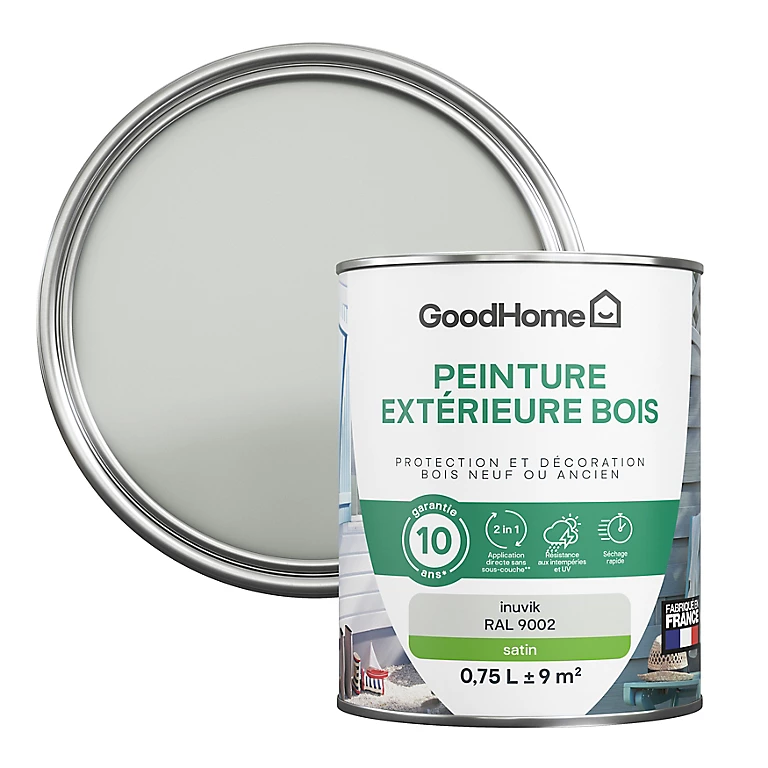 Peinture bois extérieur GoodHome Inuvik gris satin 0.75L