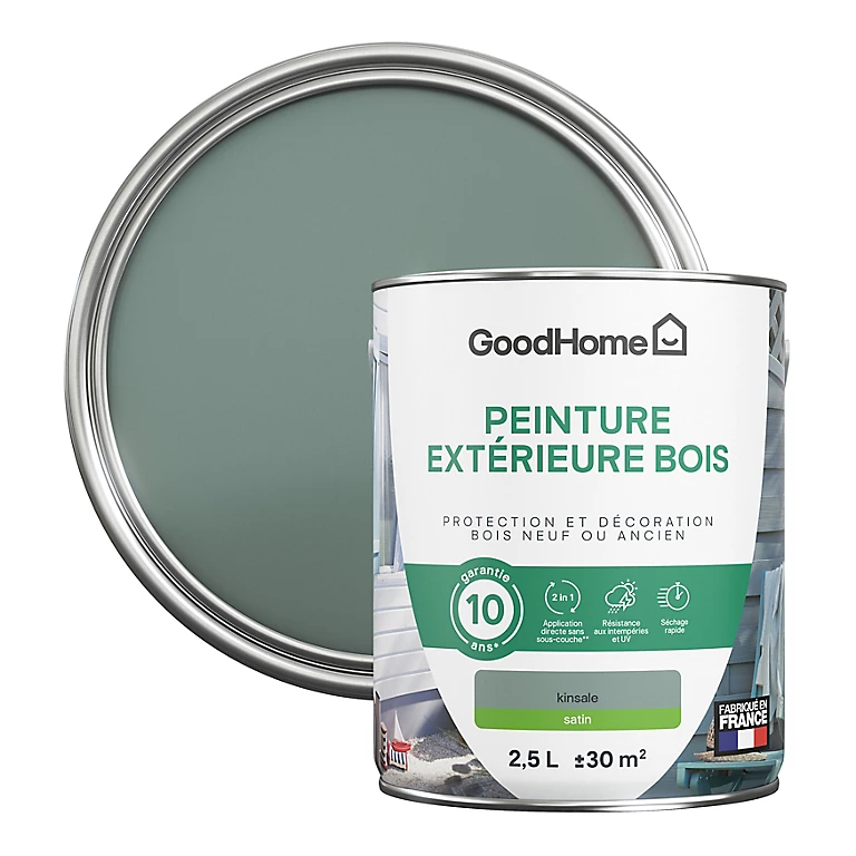 Peinture bois extérieur GoodHome Kinsale vert satin 2.5L