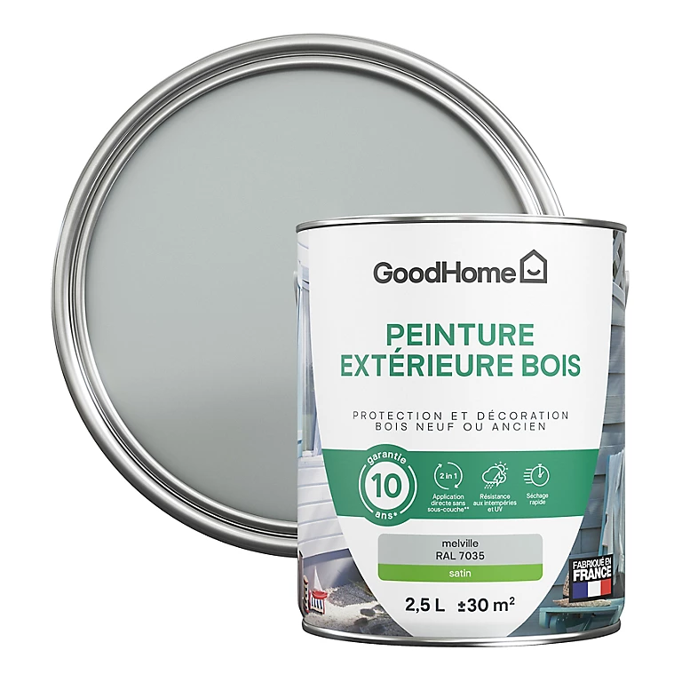 Peinture bois extérieur GoodHome Melvil gris satin 2.5L