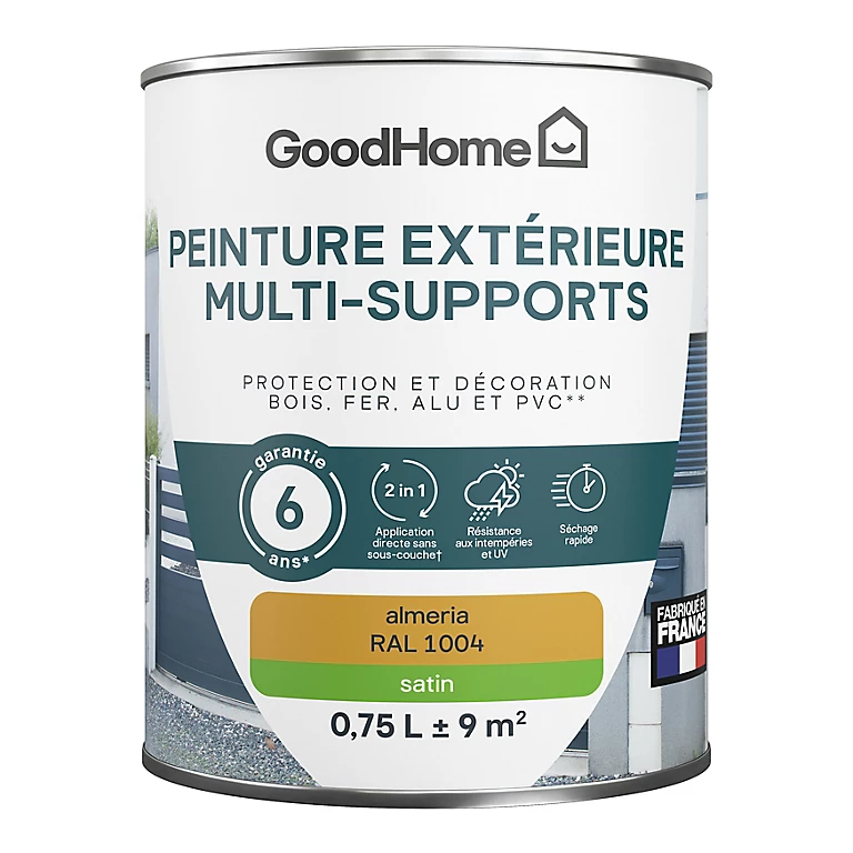 Peinture extérieure multi-supports GoodHome Almeria jaune RAL 1004 0,75L