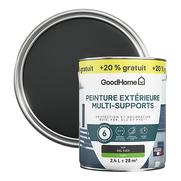 Peinture extérieure multi-supports GoodHome noir RAL 9005 2L + 20% gratuit