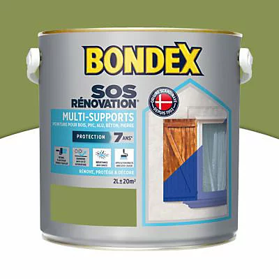 Rénovez en un clin d’œil vos fenêtres et volets avec un seul et même produit, entretenir vos supports extérieurs devient un vrai jeu d’enfant. La peinture vert olivier de la gamme SOS Rénovation multi-supports de la marque Bondex offre une seconde jeunesse à vos supports extérieurs défraîchis ou abîmés : métal, bois, PVC, pierre. Elle affiche une contenance 2 litres.