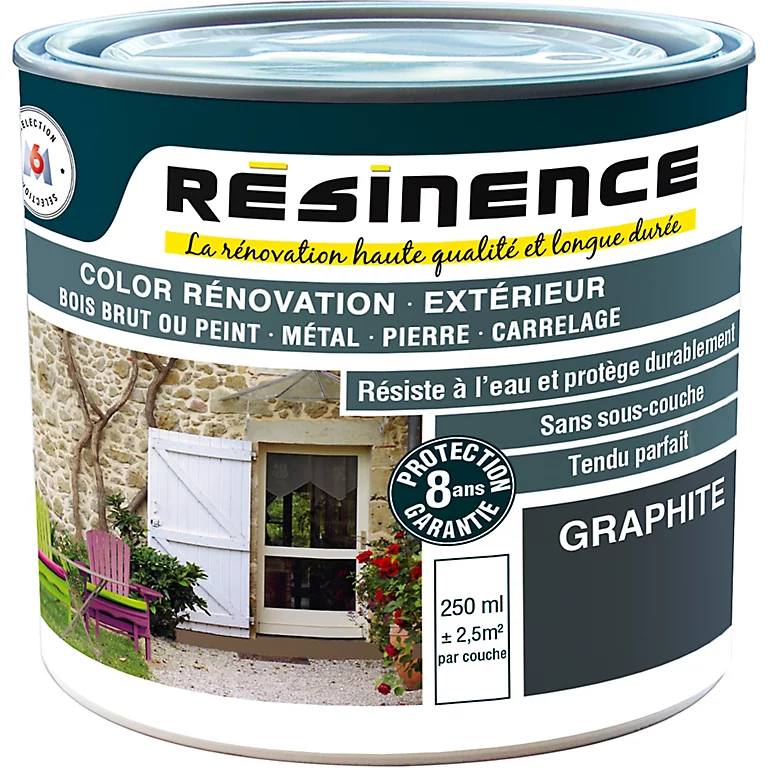 Découvrez la peinture rénovation multi-supports couleur graphite aspect satin de la marque Résinence. Elle affiche une contenance de 0,25 litres.